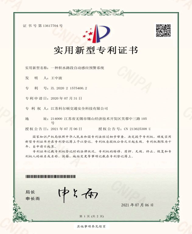 一种积水路段自动感应预警系统