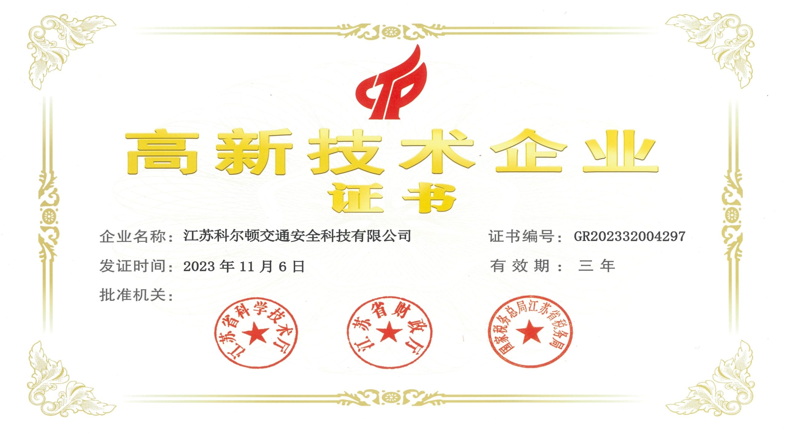 高新技术企业证书