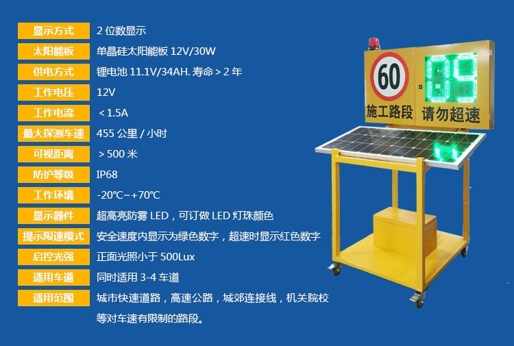 适用范围:城市快速道路,高速公路,城郊连接线,机关院校等对车速有限制的路段。